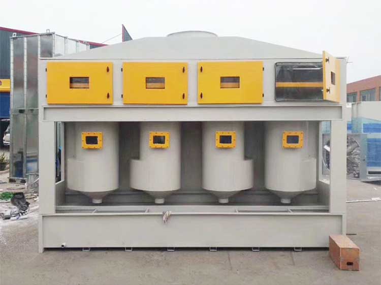 根據(jù)風(fēng)量統(tǒng)計(jì)內(nèi)容,結(jié)合上述廢氣處理工藝分析比選,同時(shí)考慮到分質(zhì)分類處理的原則。噴漆廢氣經(jīng)過(guò)水簾除霧后和晾干有機(jī)廢氣一同進(jìn)入“旋流板塔噴淋吸收+濕法等離子體裝置+光催化凈化器+填料噴淋塔”工藝處理后經(jīng)15米排氣筒達(dá)標(biāo)排放。漆廢氣經(jīng)過(guò)水簾和晾干廢氣合并后進(jìn)入旋流板塔(可防止漆霧堵塞),在旋流板塔內(nèi)加入油漆去除劑,去除99%以上的漆霧,防止大顆粒液滴、殘余漆渣等顆粒物進(jìn)入后續(xù)處理設(shè)備,減少對(duì)后續(xù)等離子體裝置及光催化凈化器等工藝設(shè)備的污染,提高設(shè)備使用壽命;然后,依次引入濕法等離子體裝置、光催化凈化器內(nèi),氧化分解廢氣中的VOCs污染成分,***終部分污染物質(zhì)被活性氧分解成二氧化碳、水和其他小分子化合物;***后,再在光催化凈化器后加填料噴淋塔進(jìn)一步吸收廢氣中的有害物質(zhì)(含有部分未來(lái)得及徹底反應(yīng)的碎片粒子和活性氧等成份,一般為小分子羧酸類物質(zhì)),凈化后的氣體經(jīng)排氣筒達(dá)標(biāo)排放。有機(jī)廢氣總收集效率90%,總處理效率約90%(設(shè)計(jì)進(jìn)氣濃度為300mg/m3、處理后尾氣排放濃度約為30mg/m3,滿足達(dá)標(biāo)排放的要求);其中,旋流板塔的去除率25%+濕法等離子體裝置去除率60%+光催化凈化器去除率37.5%+水噴淋吸收塔去除率47.5% 。該套工業(yè)化裝置目前在國(guó)內(nèi)外都得到了相當(dāng)多的應(yīng)用,去除效率較穩(wěn)定,可實(shí)現(xiàn)有機(jī)廢氣有效凈化、穩(wěn)定達(dá)標(biāo)排放的目標(biāo)。