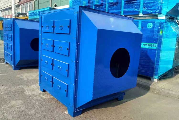 二、根據現場的實際情況,需要一臺2萬風量的活性炭環保箱,吸附箱規格為長2米,寬1.3米,高1.7米,包含8個活性炭抽屜(每個抽屜可容納48塊10*10的活性炭磚)。進風口一道過濾棉。殼體1.8mm厚的碳鋼板制作而成,抽屜用1.2mm厚碳鋼板,設備內外均噴塑。進、出風口都是?500的口。活性炭磚使用碘值不低于400,并出示檢測報告。