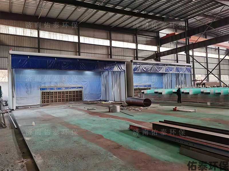 四川某企業(yè)在生產(chǎn)過(guò)程中,需要對(duì)鋼結(jié)構(gòu)工件表面進(jìn)行噴漆作業(yè),由于工件較大,之前廢氣沒(méi)有得到有效控制,對(duì)大氣環(huán)境和室內(nèi)生產(chǎn)環(huán)境造成較大污染。按照國(guó)家有關(guān)法律法規(guī)和相關(guān)部門(mén)要求,對(duì)在生產(chǎn)過(guò)程中產(chǎn)生的有機(jī)廢氣(包括:甲苯、二甲苯、非甲烷總烴及粉塵)進(jìn)行有效處理。因此,貴公司決定對(duì)噴涂過(guò)程中產(chǎn)生的有機(jī)廢氣進(jìn)行治理確保達(dá)標(biāo)排放,以達(dá)到國(guó)家有關(guān)標(biāo)準(zhǔn),實(shí)現(xiàn)綠色環(huán)保。我司根據(jù)要求作出如下解決方案:移動(dòng)伸縮房+干式噴漆臺(tái)+活性炭吸附箱。