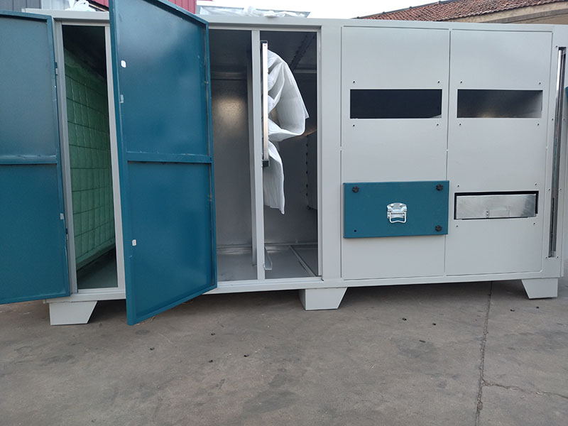 3.1、干式過(guò)濾器尺寸:L2.6*W1.1*H1.7(米),進(jìn)出風(fēng)口?500或?600配置:1層W型漆霧過(guò)濾棉,1層F4袋式過(guò)濾器(6個(gè)袋子),二次過(guò)濾漆霧。活性炭抽屜3個(gè),每個(gè)抽屜40塊活性炭磚。