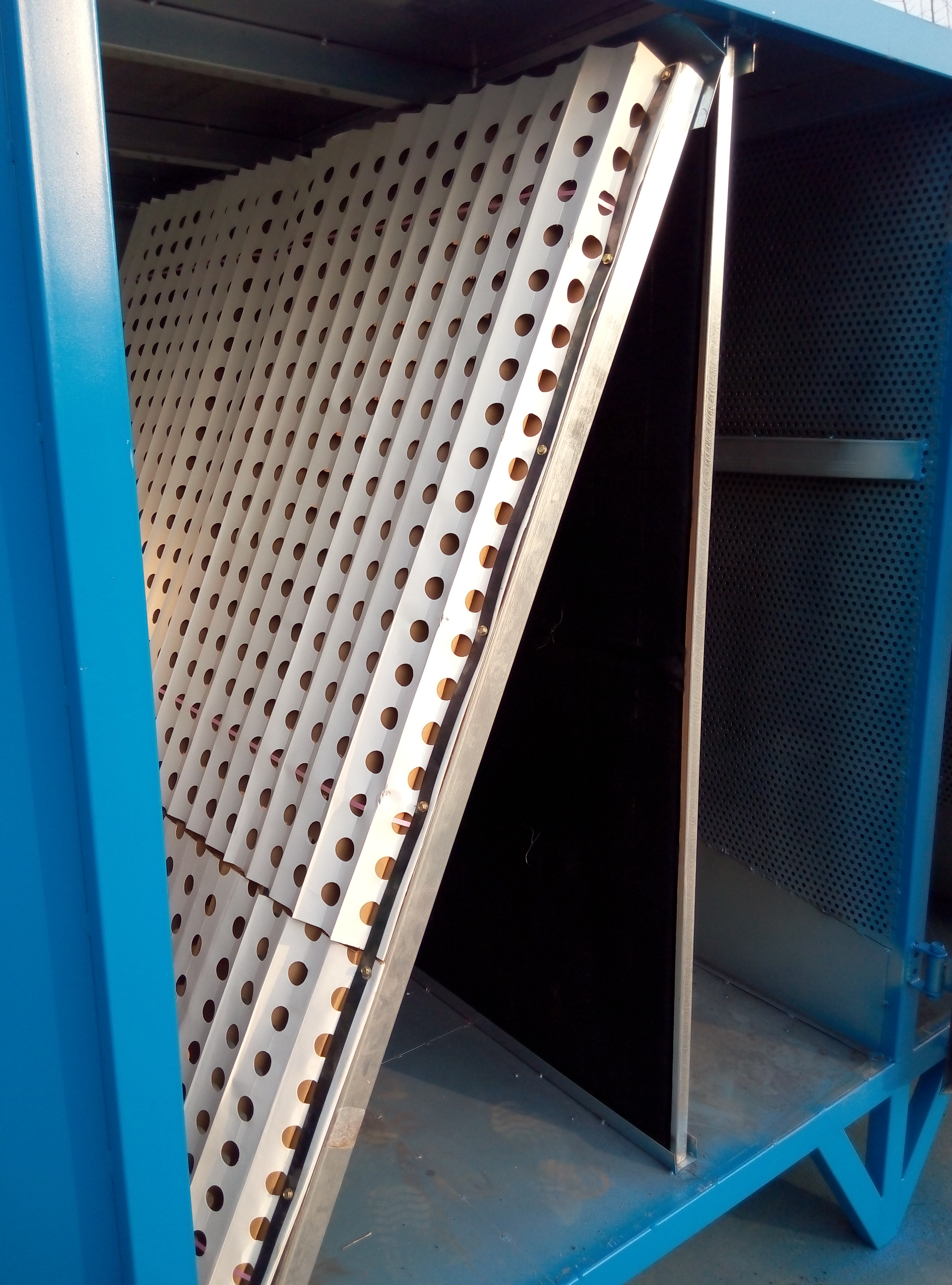3.2、干式過(guò)濾器:圖中W型是漆霧過(guò)濾棉,淺黃色的是F4袋式過(guò)濾器,二級(jí)過(guò)濾漆霧顆粒。后面再配一層活性炭,過(guò)濾噴漆的味道。
