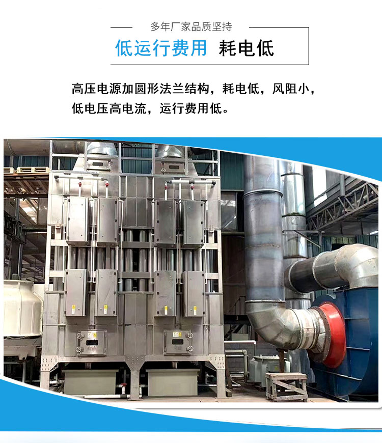 5.低運行費用:高壓電源加圓形法蘭結構,耗電低,風阻小,低電壓高電流,運行費用低。