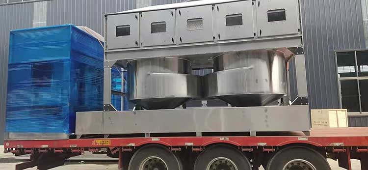 5萬風量氣旋塔規(guī)格:L4.8*W1.2*H3.0(米),4桶直徑0.8米,1臺4.0KW水泵。進風口2個,尺寸為長1.1米, 寬45厘米,除霧層使用鮑爾球。