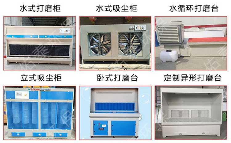 根據工作空間的要求,可定制不同尺寸的水式打磨柜。水式打磨吸塵柜由柜體、風機、水簾板、水泵、控制開關組成。