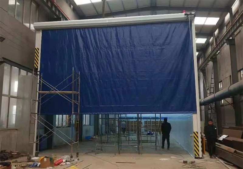 伸縮房整體為鋼制框架結構,可前后伸縮移動。框架之間的滑動連接機構框架在驅動裝置的帶動下沿地面的軌道前后豎直平行移動,同時帶動蓬布展開合攏。移動室收縮合攏時,將工件移入工作區,展開時可進行工件的噴漆或打磨等工作。在不噴漆的工作時間內,可將移動區域合攏,騰出空間場地作為其他與噴漆交叉作業的工序使用。