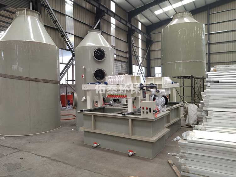 三、噴淋塔出口帶水的情況一般有以下方面原因,一是風機的功率過大,二是噴淋塔沒有除霧器,三是填充浮球過少等原因造成的。佑泰環保在實際案例中一般有以下幾種解決方法:一是噴淋塔內部增加填充浮球的數量,二是在噴淋塔與后續環保設備中間增加汽水分離裝置。另外如果使用變頻風機的話可以調整風機功率。