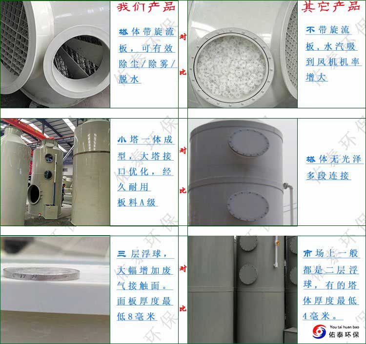 2、本公司噴淋塔配有三層浮球,二層噴淋,旋流板,及芯銅電機水泵,板料使用A級板??砂匆蠖ㄖ?。
