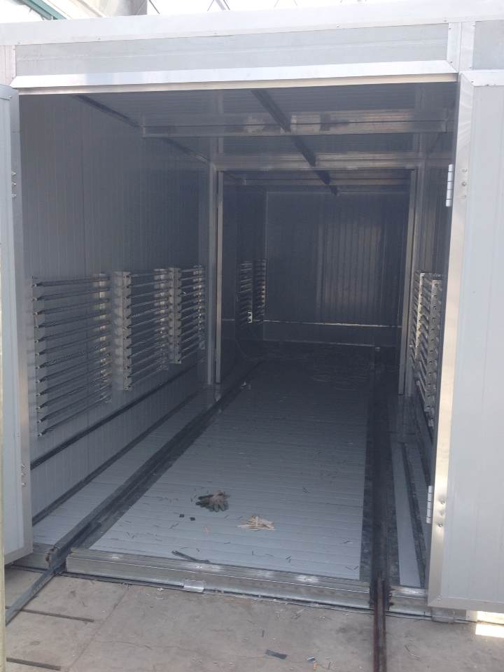 3)、室體結構:進、出口設置風幕,有效防止熱空氣外逸,減少熱量損失。室體內壁板:δ1.2mm鍍鋅板。室體外壁板:≥δ0.4mm彩色瓦楞板或彩鋼板。室體骨架:采用方管等型材。